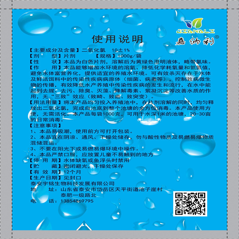 嘉納利二氧化氯消毒劑含量10%1Kg水產(chǎn)泡騰片